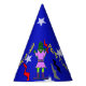 Um robot verde, alienígena personagem de desenho animado do Capitão Zoey. Desligue um pouco de diversão de uma Festa de aniversário com este sorridente robô de menina verde com roupas cor-de-rosa e verdes, botas de espaço floridas roxas e o olhar de luzes coloridas 3D como acessórios na cinta, bandas de pulso e colarinho. Chapéus de festa têm um fundo azul com estrelas e relâmpagos coloridos. Chapéus de festa de aniversário divertidos para qualquer criança ou menina que ame robôs, naves espaciais, aliens e exploração da galáxia. O design de Trabalho de arte gráfico original não pode ser alterado ou reproduzido Copyright © 2014 , 2016 TamiraZDesines. Todos os Direitos Reservados. Visite minha loja para ver mais itens originais: www.zazzle.com/tamirazdesigns*