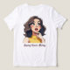 Uma ilustração digital vibrante de uma mulher glamourosa com cabelos ondulados volumosos, composição ousada e olhos expressivos, vestindo um topo amarelo-chico. Sua expressão divertida e surpreendida adiciona personalidade e charme, misturando estilo moderno de arte pop com talento retrô. Perfeito para amantes de moda, impressão de demonstrativo ou na moda.