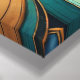 A beautifully detailed digital artwork features a stylized peacock amidst swirling patterns. The vibrant turquoise and gold hues create a mesmerizing texture.
