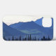 Montanhas azuis, água azul do lago, árvores verdes escuras, algas rosa e encharcadas. Uma representação do verão no extremo norte. Adicione seu próprio texto. Mosquitos não incluídos.