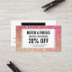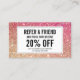 Coordena-se com as Eyelashes com o Modelo de cartão de negócios Glitter Vermelho/Bronze até 1201AM. Atualize o texto de promoção para a oferta desejada. Gerar mais vendas e visitas, incentivando seus clientes a encaminhar seus amigos para um serviço ou produto gratuito com desconto. Excelente para salões de extensão de lash, bares de lash, artistas de maquiagem e muito mais. © 1201AM CREATIVE