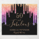 Um rótulo de vinho de 50 anos (ou qualquer idade) de moda e elegante. Um fundo preto clássico, decorado com pingos dourados falsos e coloridos do arco-íris, pingando tinta, parece roxo, rosa e ouro rosa. Com o texto: 50 e fabuloso. Personalize e adicione um nome e uma data. Data de nascimento ou data da festa. Texto do ouro. A palavra Fabuloso é escrita com um moderno estilo escrito à mão com traços.