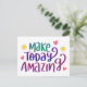 Um cartão-postal positivo com 'tornar o dia incrível' escreveu em cores brilhantes. Seria perfeito enviar para alguém para brilhar lá em cima.
