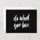 Faça o que você ama o cartão postal preto