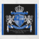 Crie seu próprio Casaco de Braços aristocrático, Emblem, Insignia ou Crest Familiar com este belo e clássico escutâneo ou design de escudo. Padrões de cobalto azuis decoram um escudo tocado com coroa prateada e flanqueado por leão heráldico medieval ou grifo. Uma faixa superior correspondente mantém a data de casamento/data de nascimento/slogan ou choro de batalha personalizado. O escudo tem espaço para suas iniciais de monograma. Banner inferior carregar seu nome de família. Há também espaço abaixo para sua citação, lema ou mensagem favorita. Substitua o texto do exemplo por seu próprio para um presente personalizado. Uma design neutra do ponto de vista do gênero que funcionará para famílias, grupos, casais ou indivíduos. Faz um presente maravilhoso para Casamento, Aniversário, Aniversário, Reforma, Promoção, Dia do Pai, Festa de Despedida de Solteiro, Chá de casamento, Graduação, Dia Internacional da Herálseca, Festas Temáticas Medievais ou Fantásticas e outras ocasiões especiais.