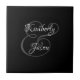 Os nomes dele e dela em lindos roteiros brancos e cinzas, que escrevem para um design elegante sobre fundo preto. Clique em "Personalizar" para alterar cores e digitar estilos.
