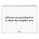Criar seu próprio calendário personalizado transferindo arquivos pela rede seu próprio fotos ou art. Para o cobrir assim como a área da foto de cada mês, substitui simplesmente o modelo cinzento com seus próprios foto ou trabalhos de arte. Note por favor que há igualmente uma sala para uma mensagem feita sob encomenda na parte de trás do calendário. ** Personalize ou suprima dessa área antes da compra **