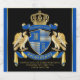 Crie seu próprio Casaco de Braços aristocrático, Emblem, Insignia ou Crest Familiar com este belo e clássico escutâneo ou design de escudo. Padrões azuis de cobalto decoram um escudo tocado com uma coroa ouro e flanqueado por águias heráldicas medievais. Uma faixa superior correspondente mantém a data de casamento/data de nascimento/slogan ou choro de batalha personalizado. O escudo tem espaço para suas iniciais de monograma. Banner inferior carregar seu nome de família. Há também espaço abaixo para sua citação, lema ou mensagem favorita. Substitua o texto do exemplo por seu próprio para um presente personalizado. Uma design neutra do ponto de vista do gênero que funcionará para famílias, grupos, casais ou indivíduos. Faz um presente maravilhoso para Casamento, Aniversário, Aniversário, Reforma, Promoção, Dia do Pai, Festa de Despedida de Solteiro, Chá de casamento, Graduação, Dia Internacional da Herálseca, Festas Temáticas Medievais ou Fantásticas e outras ocasiões especiais.