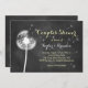 Um delicado tipo de dandelion e fita, em fundo de quadro, acentua esse convite de Chá de fraldas amarelo e cinza. Se forem necessários itens de coordenação adicionais, entre em contato conosco em prettyfancyinvites@gmail.com com sua solicitação.