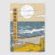 Tome um poster de viagens estilo Manga Japonês de um velho barco de pesca de madeira numa praia.