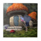 Brilhe sua casa com este azulejo que apresenta uma fada rosa e bonita com asas azuis saudando uma joaninha que entrou numa floresta mágica perto da casinha de cogumelo da fada.