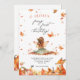 Fall Fairy First Birthday Invitation with a Fox and a pixel with wings and fall Foles an Bompkins