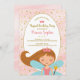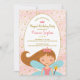 Celebre sua pequena princesa com este convite de aniversário mágico que apresenta seus detalhes de festa enquadrado por um fundo cor-de-rosa e dourado brilhante e uma princesa de fada precioso. O convite perfeito para garotas que adoram vestir-se e brincar mágico.