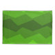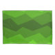 Este travesseiro tem um design geométrico de cinco tons de verde correndo horizontalmente.