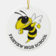 Segundo grau de Fairview junto com mascote escolar, a jaqueta amarela, de um lado. Classe 20XX, nome do estudante, e "uma vez jaqueta amarela, sempre jaqueta amarela!" do outro lado. Tudo nas cores da escola de amarelo, preto e branco.