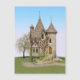 Renderização digital em 3D de um castelo de conto de fadas num prado verde, fundo azul
