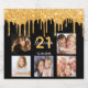 Para uma festa de aniversário de 21 anos, celebrando sua vida com uma colagem de 5 fotos suas. Personalize e adicione um nome, 21 anos e uma data. Data de nascimento ou data da festa. Letras brancas e ouros coloridas. Cor de fundo preto clássico, decorada com pingos de brilho dourado, aparência de pingar tinta.
