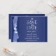 É o seu casamento e você quer enviar cartões de "Salvar a Data"? Então este cartão azul elegante é perfeito para você! Tudo o que você precisa fazer é mudar os textos no cartão. Você pode aumentar ou diminuir o tamanho dos textos clicando em "Personalizar".