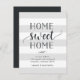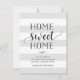 Anúncios encantadores e modernos e em movimento deixam amigos e familiares saberem sobre sua nova casa doce! Design apresenta um fundo listrado sutil em cinzas pálidas e brancas, com "lar doce lar" em script preto suave e tipografia de blocos. Use os campos modelo para adicionar sua introdução personalizada, novo endereço e nomes.