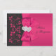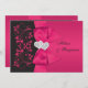 Este convite de casamento floral em rosa fúcsia e preto, elegante e romântico, tem uma fita e laço IMPRESSOS com um par de joias de diamante IMPRESSAS e corações entrelaçados com brilho de prata FALSA. ****POR FAVOR, OBSERVE que não há imagens em relevo ou embutidas neste cartão. ALÉM DISSO, a Zazzle NÃO editará nada em relação a erros de digitação ou alinhamento, ou espaçamento, então, por favor, certifique-se de que o seu texto esteja exatamente como você deseja. Eu não verei o seu convite, então, se você precisar de ajuda com a personalização do texto, por favor, envie-me um e-mail ANTES de fazer o pedido. Tudo é impresso plano. As escolhas de texto e papel são totalmente personalizáveis, MAS eu recomendaria o brilho pérola ou semibrilho para que seja impresso o