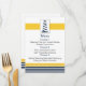 Listras azuis e brancas marinhos com borda amarela e borda pontilhada branca com um farol, cartões de cardápio náutico de Mod. Produtos correspondentes também disponíveis.