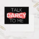 'Fale Darcy para mim', frase inspirada pelo personagem de Jane Austen Darcy do livro Pride and Prejudice.