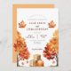 O Convite para casamentos outono apresenta árvores de queda de aquarela e veados na frente, no meio de uma floresta condensada de cores quentes do outono.