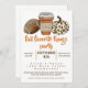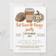 Celebre a estação com este convite de festas de coisas favoritas festivas que apresenta um futebol, um café confortável e uma abóbora de outono. A maneira perfeita de hospedar uma reunião de outono onde todos trazem três de suas coisas favoritas para compartilhar, trocar e aproveitar. Excelente para amigos apaixonados pelo futebol, entusiastas do outono e qualquer um que ama vibrações acolhedoras. Personalize com seus detalhes de evento para criar o convite sazonal perfeito.