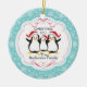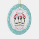 Nossa família datado original dos enfeites de natal 3 caracteriza a família a mais bonito de 3 pinguins ajustados em um fundo azul & branco do floco de neve. Personalize com sua informação e data e você são todos ajustam-se para ir! Presente datado maravilhoso da lembrança para sua árvore de Natal da família e uma grande adição a você coleção dos enfeites de natal.