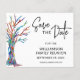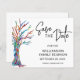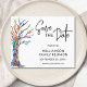 Peça à sua família para salvar a data da Reunião da Família com este na moda e cartão de anúncio de orçamento colorido. Ele apresenta uma árvore genealógica nas cores do arco-íris. Facilmente personalizável. Mosaico original & Watercolor © Michele Davies.