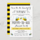 Convite para chás de fraldas de abelhas, corações e banners para o tema das abelhas. Ideal para um chá de fraldas neutro em relação ao gênero e para alguém que procura um convite para chás de fraldas temático de abelhas.