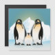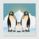 Família de pinguins contra os icebergs. Pinguim mãe e pai olhando para o pinguim bebê, enquanto olha para o hetero.
