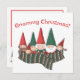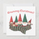 A frente deste cartão é impressa com uma bela ilustração de uma família de gnomos embrulhada num lenço que a vovó ainda tricota. Na parte de trás do cartão está impressa outra ilustração de uma menina gnomo que está decorando o chapéu do avô gnomo com luzes de Natal. Lá atrás há muito espaço para escrever suas saudações ou sua mensagem. O texto na frente do cartão é completamente personalizável.