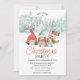 Família dos Gnomos de Quatro Convites de festas de Natal Gnomos Gnomos convites de festas de Natal com um gnomo, mãe, gnomo, rapaz ou filho, um gnomo e um cão filhas. Este convite de festas de Natal da família gnomo também apresenta um sinal e um inverno atmosférico e fundo de neve. Este convite para a festa da família de gnomos de Natal é uma maneira fofa de convidar convidados para a festa de Natal da sua família.