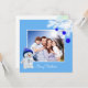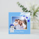 Família personalizada, pinheiro branco ornamentado com bolas de Natal azuis e bonitinho bonitinho no céu azul Cartão de Saudação de Natal.