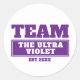 A equipe roxa personalizou adesivos. Ideal para eventos familiares, jogos divertidos ou para equipes desportivas para mostrar as cores da sua equipe. Personalize este design com seu próprio nome de equipe ou nome de família e ano de criação, lema ou nome de equipe rosa. Outras cores disponíveis. Design por www.mylittleeden.com no zazzle