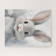 Quebra-cabeça de quebra-cabeça de um coelho de cinza fofo e fofo com orelhas grandes e uma expressão adorável é cercada por delicadas flores brancas. As cores macia e pastel criam uma atmosfera suave e caprichosa.