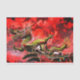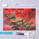 Papel tecidular com imagem de dragão contra fundo vermelho.
