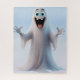 Quebra-cabeça de quebra-cabeça de um personagem fantasma amigável e cartoonista brilhando amplamente com grandes olhos expressivos e braços estendidos, dando uma vibração brincalhona.