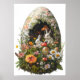 Poster de Páscoa excelente com um ovo grande de Páscoa e animais bonitos como um coelho ou coelho da Páscoa. Magical Fantasy Forest Floral Art com flores e animais adoráveis. Felz pascoa.