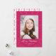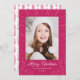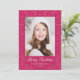 design de cartão com fotos de férias de Inverno Flourish com fundo de framboesa, bela fronteira de folhagem de inverno, e "Feliz Natal" com uma letra elegante.