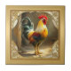 Tile featuring a painting of a rooster framed by a classic design in gold. Beautiful for a farmhouse style or kitchen.