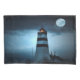 Na frente: Uma noite dramática escura perto da costa com uma torre de farol e lua de cheio. Uma luz fraca pode ser vista na torre do farol. O farol, símbolo de esperança no mais escuro das noites, orientação, direção e ajuda. Uma viagem ou porto seguro. Foto com efeitos de tinta adicionada. Voltar: Somente cor preta, você pode alterá-la ou removê-la. Cobrir de duvet correspondente disponível.