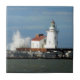 Azulejo cerâmico decorado com farol com onda, adiciona um toque náutico à decoração domiciliar! Peça de sotaque interessante para casa ou escritório.
