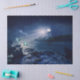 Papel tecidular com imagem de sereia e farol à noite.
