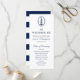 Adicione seus detalhes para criar um cartão de programa de casamento único e clássico, mas moderno, em estilo náutico. Este design apresenta uma ilustração de farol náutico vintage seguida dos seus detalhes abaixo dele. No verso há uma série de faixas marinhos e brancas para completar a aparência. Todos os elementos deste item são ajustáveis utilizando a função de personalização. Aproveite criar e fazer-o seu.