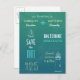 Cartão postal "Save the date" com tipografia elegante moderna com barco e farol em fundo azul perfeito para o seu casamento com tema de praia. Confira nossa loja para convites de casamento, cartões de RSVP e mais deste design incrível. Faça do seu casamento o evento mais comentado a partir destes convites.