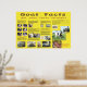 Poster educativo de caprinos contendo informações sobre: Produtos e raças de laticínios/encontro/fibras, alimentação/digestão, ordenha