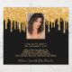 Pode ser usado na frente de uma garrafa, mas é usado para trás. Para uma festa de aniversário de 21 anos. Personalize e adicione uma foto da aniversariante. Adicione seu texto, fatos divertidos, biografia sobre a aniversariante e seus nomes. Um fundo preto chic decorado com pingos de brilho dourado falso, aparência de pingar tinta. Seus nomes são escritos com um script de estilo manuscrito.