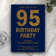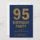 Incline seus convidados com este glamouroso 95º convite de aniversário com um texto brilhante de ouro em negrito sobre um fundo azul. Basta adicionar os detalhes do seu evento neste modelo fácil de usar para torná-lo um convite de tipo único. Sacudir a placa para revelar uma textura falsa de brilho dourado na parte traseira da placa.